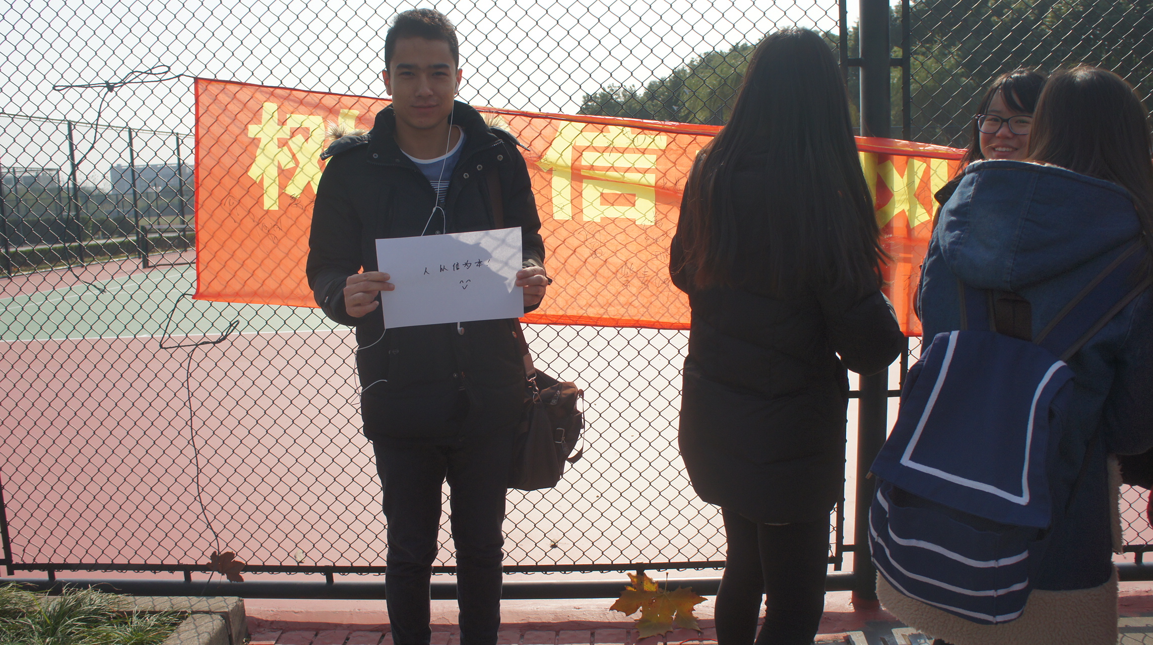 活动正式展开,陆陆续续有同学参加到我们的活动中来,在横幅上签下自己的姓名,两人一组摆出“C”和“X”的造型拍照,设计承诺诚信考试的标语并与之合照,这些行动无一不是一份对诚信的许诺。
