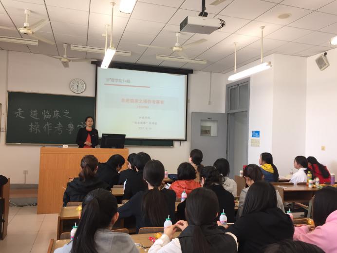 首先,王蒂娜老师结合历届学生的经验,给14护本的同学提出3个关键词:“适应、学习就业、请假”,大概讲述了在未来一年里大家会经历的过程,为14级护理本科的同学建立了一个基本的框架。接着,分别由来自华山、龙华、中山三家医院的学姐陈佳敏、王秋蕊、周雨诗分享自己在临床实习的酸甜苦辣,将细节一点点填充入框架当中。陈佳敏学姐语言风趣,告诉同学们该以什么样的心态来对待实习。王秋蕊学姐十分贴心,将她所在医院及周边场所一一介绍。周雨诗学姐则非常认真的介绍了她所在的医院对于实习生课业上的要求,让同学们对理论知识学习的重要性有更深刻的理解。每所医院各有特色,14护理本科的同学从学习、生活、就业等多方面得到了充足的信息,有助于进行综合评判,更加明确自己之后下临床前选择的目标。