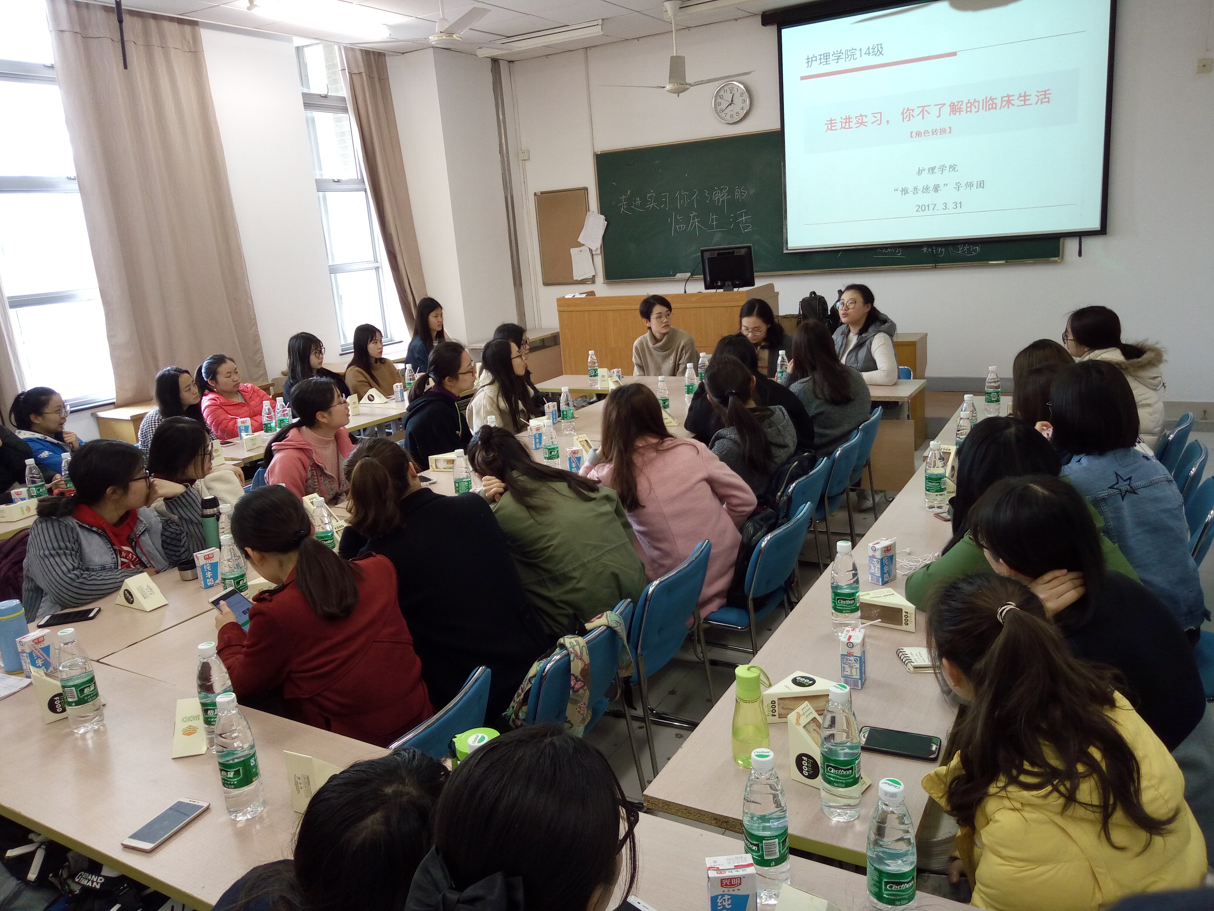 2017年3月31日中午,taptap点点官方网站“惟吾德馨”导师团在8207开展率名为“走进实习,你不了解的临床生活”的座谈活动。邀请了13级护理本科辅导员王蒂娜、14级护理本科辅导员刘秋宏、13级护理本科的陈佳敏、王秋蕊、周雨诗学姐以及14护理本科的部分同学参与了这次活动。