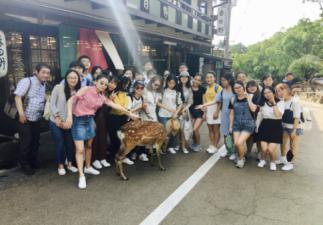 我们乘坐阪急电车前往日本国民公认的“精神故乡”――奈良。踏入奈良公园,随处可见的是自由放养且不怕生的小鹿与充满新鲜感、用“鹿仙贝”诱惑小鹿的游客们,而这一切仿佛是一个仙境,在其中全然感受不到任何城市喧嚣,取而代之的是人与自然的完美结合。深入奈良公园,具有唐代建筑风格的东大寺映入眼帘,除了气宇非凡的奈良大佛,同学们仿佛更多地被寺内孩子们稚嫩的歌唱声及同学穿过聪明洞的逗趣模样所吸引。无论是像我们一样来此修学、旅行的游客还是相伴散步的居民们,都在此记录下了一段轻松愉快而耐人回味的好时光。