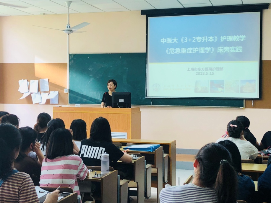 2018年5月15日下午,2017级护理学(专升本)全体同学有幸请到上海市东方医院护理部主任张伟英老师为大家介绍《急危重症护理学》床旁实践,为即将下临床的“白衣天使们”释疑解惑。