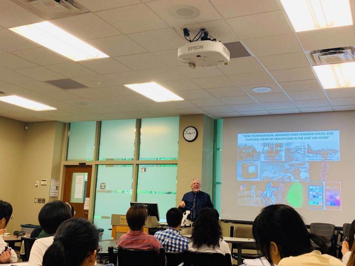 本周,同学们主要通过全球健康及疾病发展趋势、护理实践及教育、个体健康理念等主题学术讲座进一步地了解到了国际健康发展趋势与中美护理在教学及实践中的同异。