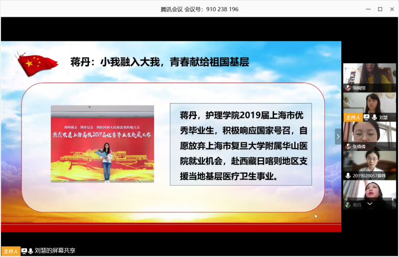 为深入学习贯彻习近平新时代中国特色社会主义思想,学习宣传先进典型事迹,激发学生党员守初心、担使命,以榜样的力量引领前行,充分发挥党员的先锋模范作用,taptap点点官方网站第一学生党支部、第二学生党支部、研究生支部及毕业学生代表们于5月15日开展了“雪域绽放岐黄梦,一片丹心正青春——以榜样的力量引领前行”线上主题党日活动。本次活动由taptap点点官方网站第二学生党支部书记刘慧同志主持。
