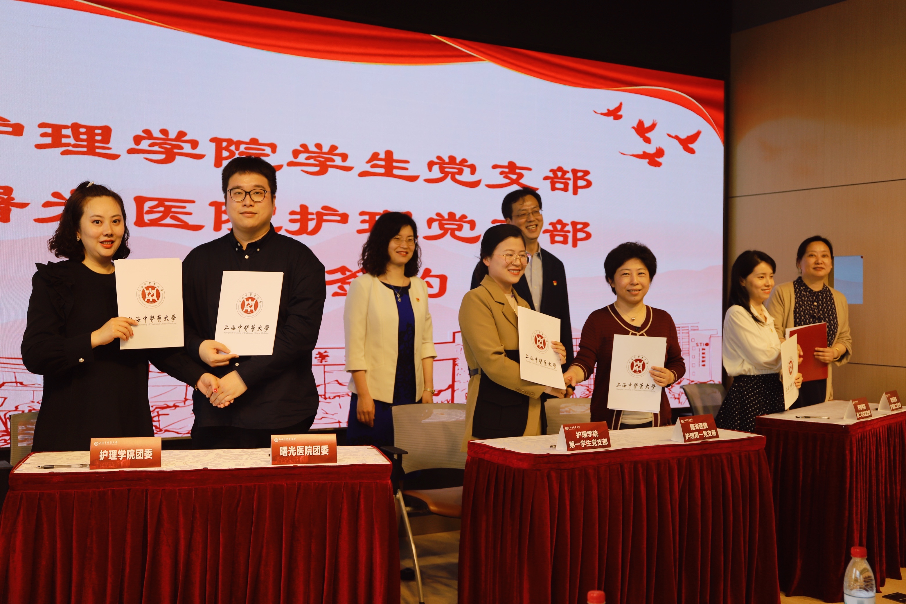 4月28日下午,为纪念五四运动102周年到来,taptap点点官方网站团委、第一学生党支部、第二学生党支部与曙光医院团委、护理第一党支部、护理第二党支部共同组织开展“党团联建共育人,立德铸魂齐发展”主题联建活动并现场进行了签约仪式。taptap点点官方网站党总支书记史美育、taptap点点官方网站党总支副书记张瑛、taptap点点官方网站团委书记吴平、曙光医院党委副书记姚政出席活动。