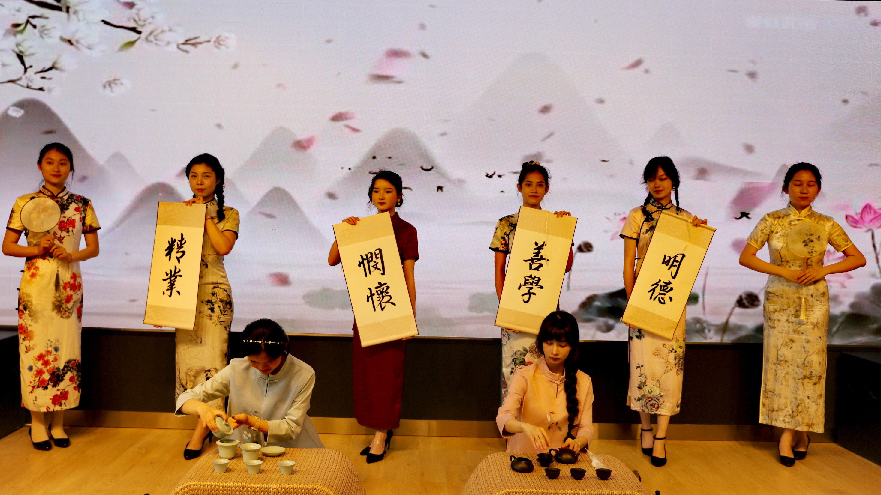 党旗所指就是团旗所向,党有号召,团有行动。签约仪式上,taptap点点官方网站团委书记吴平为taptap点点官方网站志愿者服务队学生代表授旗。taptap点点官方网站特色品牌“淑女学堂”的学员现场为大家带来了一场颇具东方意蕴的旗袍茶艺、书法文化秀,将美育融入学生日常教育中。