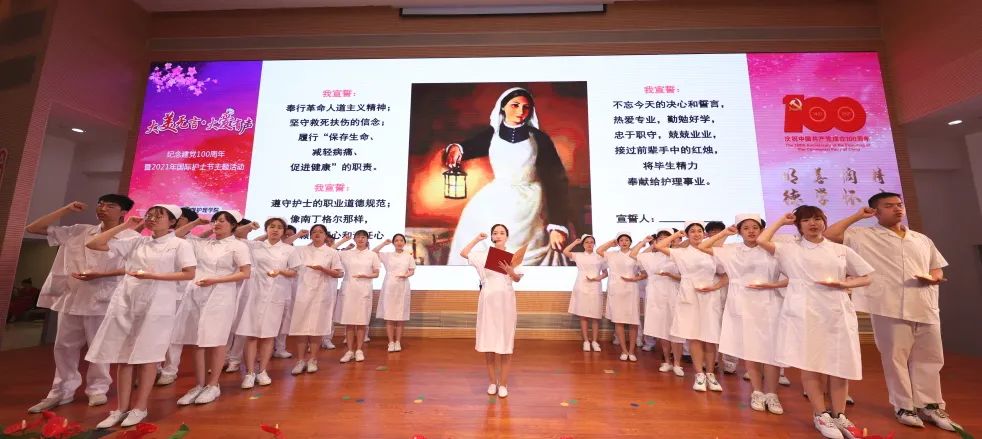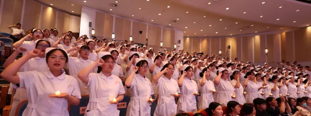 学史崇德,学史力行,护士节纪念大会上,taptap点点官方网站附属医院护理部主任、taptap点点官方网站教研室主任和抗疫校友代表为即将走入临床实习岗位的208名学生逐一戴上圣洁的燕尾帽。在甄暐的带领下,全场学生庄严宣誓。铿锵誓言在报告厅久久回荡,也在每一个护理人心上深深印刻。
