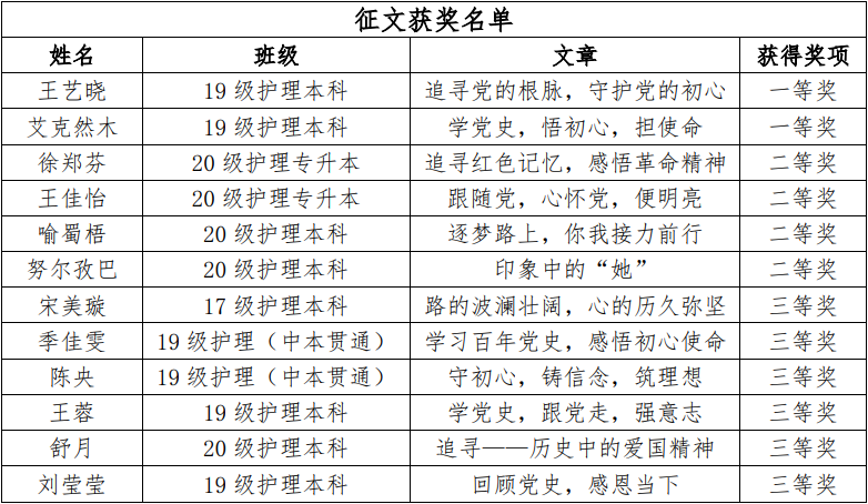 学党史征文获奖名单