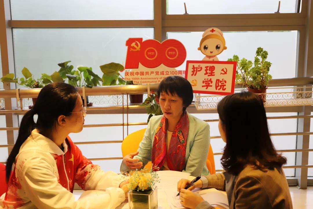 在采访期间,周兰姝老师给我们讲述了自己入党的故事,让我们深刻感受到了周老师作为护理党员对初心使命的坚守。周老师激励我们要把“全心全意为人民服务”和护理人的使命感牢记心中!站在一个更高的角度看待护理,在群众需要我们的地方,发挥护理人的价值!正如周老师所说“这个职业是非常崇高和值得敬仰的”。马上要下临床实践了,我们将勇于探索、开拓创新,不负时代使命助力健康中国。