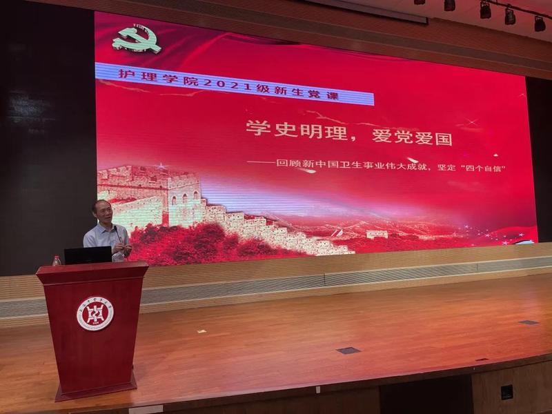 2021年9月6日下午,taptap点点官方网站党总支书记史美育在图书馆四楼报告厅,为taptap点点官方网站2021级大一新生作了题为“学史明理,爱党爱国——回顾新中国卫生事业伟大成就,坚定四个自信”的书记第一课。会议由taptap点点官方网站党总支副书记李媛主持,taptap点点官方网站新生辅导员和全体2021级学生参加。