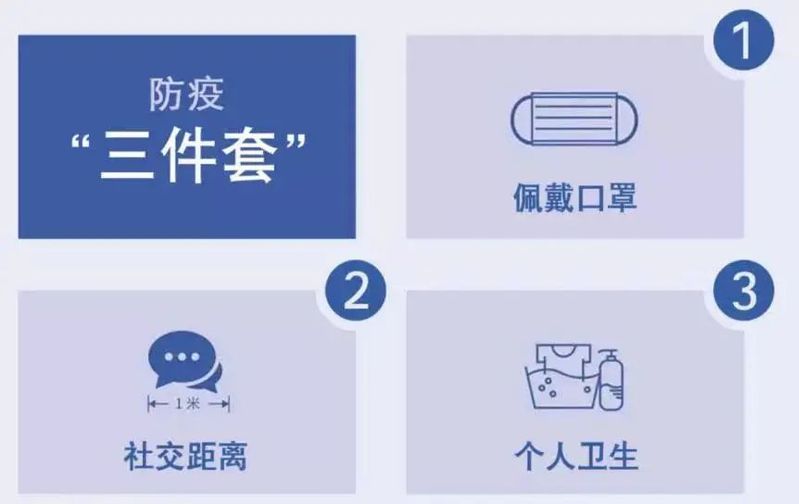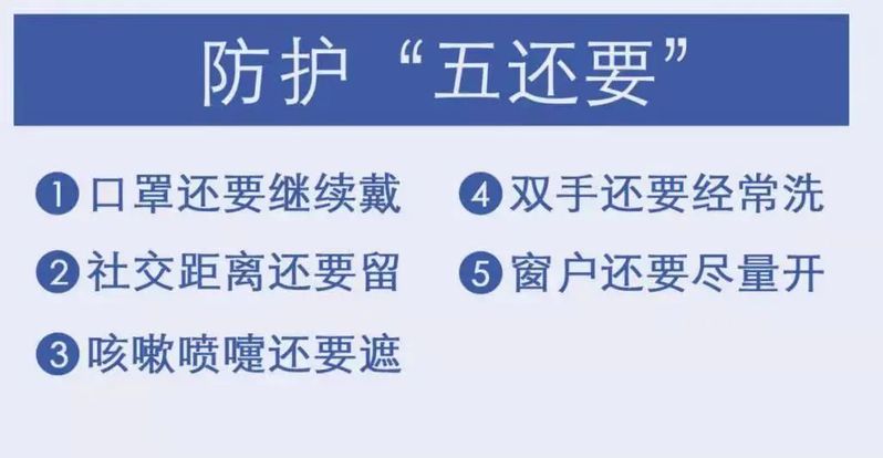 随身携带足量的口罩,速干手消毒剂等个人防护用品,全程佩戴口罩,做好手卫生,坚持落实“三件套”“五还要”。