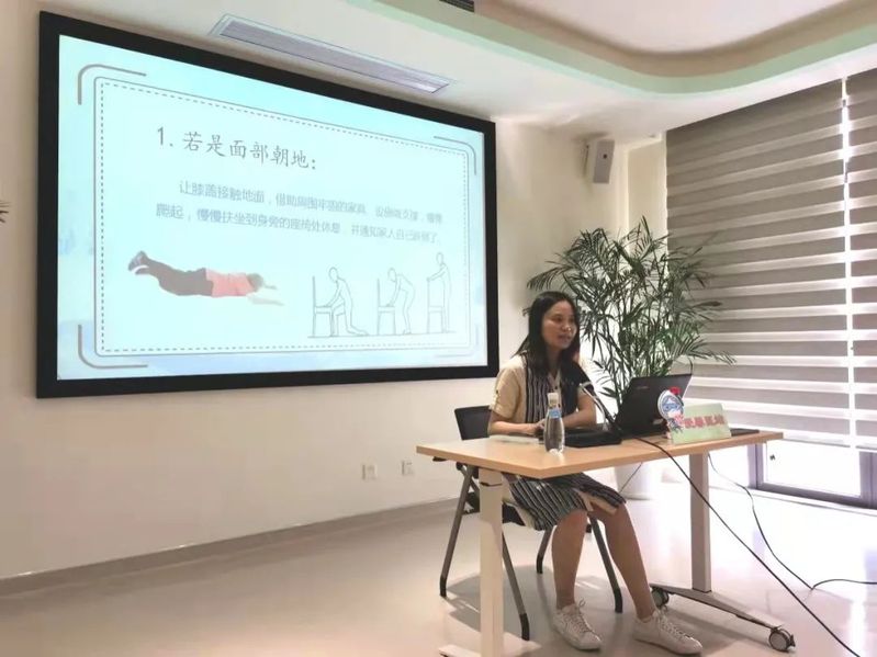 继开展跌倒危险的知与行、跌倒的预防措施的讲座之后,以老年预防跌倒科普宣传为主题的暑期社会实践小组在指导教师耿朝辉老师的带领下,到长宁区新泾五村小区内的爱馨苑进行了老年人跌倒预防系列科普讲座的第三弹——跌倒的现场应急。