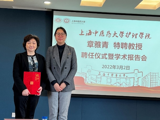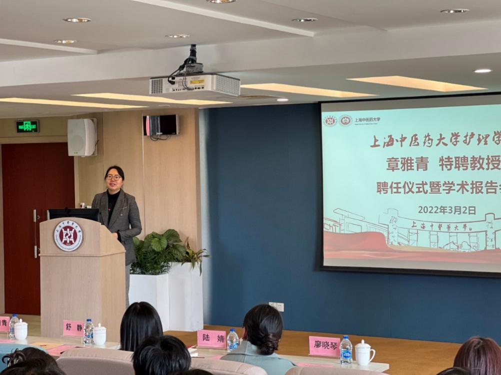 张翠娣院长介绍了章雅青教授的研究方向及主要的学术成就。章雅青教授是中国医院发展研究院护理管理研究所所长,美国护理科学院FellowFAAN)。现任教育部护理学专业认证工作委员会副主任委员,教育部高等学校护理学类专业教学指导委员会委员,全国高等学校护理学类专业教材评审委员会副主任委员,中国科普作家协会医学科普专委会副主任委员,上海市护理学会教育专委会主任委员,上海市科技期刊学会理事、生物医学期刊专业委员会副主任。先后主持20余项国家社科基金、国自然子项目、省部级项目,在SCI和核心期刊上发表研究论文150篇。