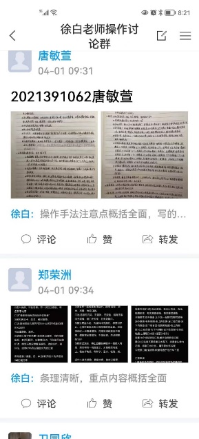 接着董璐老师介绍了《健康评估》实践课开展过程,吕伟波老师自购并为学生送去体格检查所需要的基本操作物品,包括血压计、听诊器、叩诊锤等,要求学生每3人为一组,共同完成操作,并上传至课程平台。同时,组织课程所有参与实践教学的教师,包括临床附属医院和实验中心的老师共同在线指导学生的操作练习,以保障实践教学的质量。并邀请研究生课程助教对学生进行同伴式的学业指导和心理安抚。