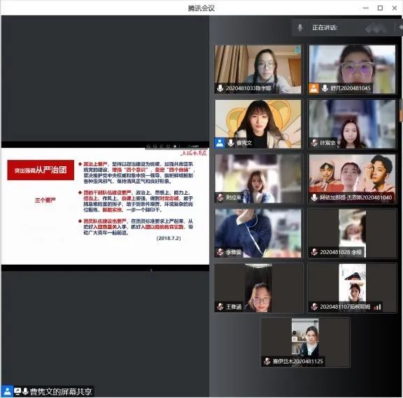 团支部通过线上会议,开展以“青春心向党,奋进新征程”为主题的团日活动。团支部团员38名,青年4名,共同观看《建党伟业》视频,学习了解党的百年伟大历史,并通过共同学习青年大学习了解了团的百年辉煌史。除此之外,本次主题团日活动,特别邀请了此次疫情期间在社区进行志愿者活动及去往曙光医院支援的同学,与支部青年分享了实践经历及心得,与此同时,全员共同观看了穿脱防护服的视频并进行了学习。