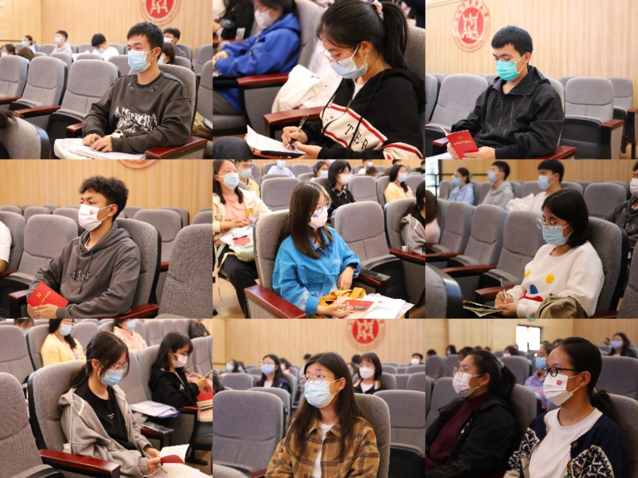 史美育书记做了开班动员。首先,他鼓励并肯定同学们向党组织递交入党申请书的同学们表示由衷的肯定。随后,史老师就学好党章对全体学员提出了三点要求:一是要结合二十大的重要精神认真研读党章,读通读懂党的重要理论知识,深入学习习近平新时代中国特色社会主义思想。二是要学先进,勤实践,常思考,以先锋模范人物及抗疫先进校友为榜样,自觉用党章规范我们的言行,做到“为人民服务无大小”。三是要在学思践悟中,不断审视并且端正自己的入党动机,明确自己的出发点和最终目的。