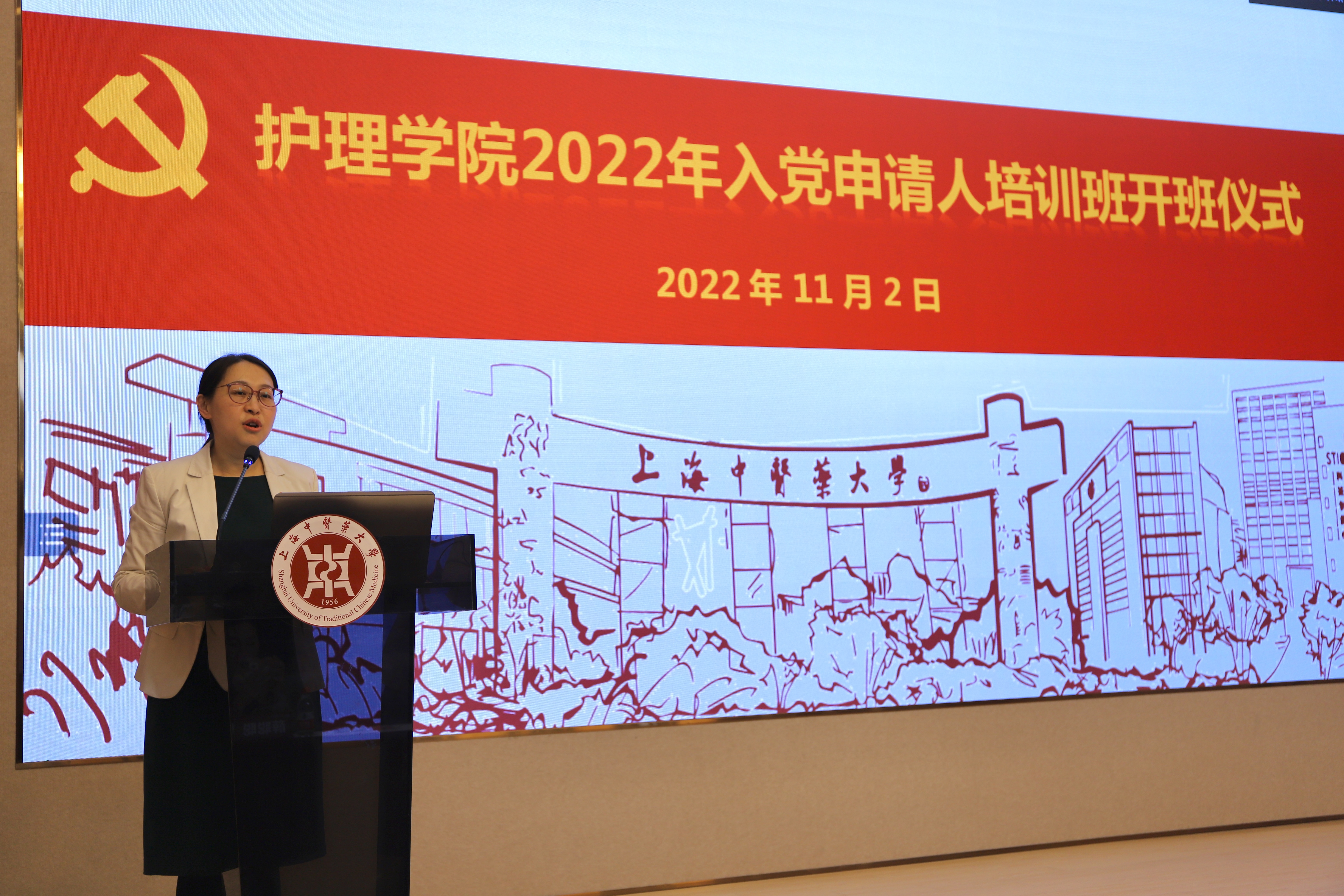 2022年11月2日下午,taptap点点官方网站在校全球伙伴合作中心一楼报告厅举办了2022年入党申请人培训班开班仪式暨第一课。校党校副校长、党委组织员徐琳、taptap点点官方网站党总支书记史美育、学院各学生党支部书记、党员青年教师班主任代表和部分党员教师参加了会议,74名大学生入党申请人以线上线下相结合的方式参加培训,仪式由taptap点点官方网站党总支副书记李媛主持。