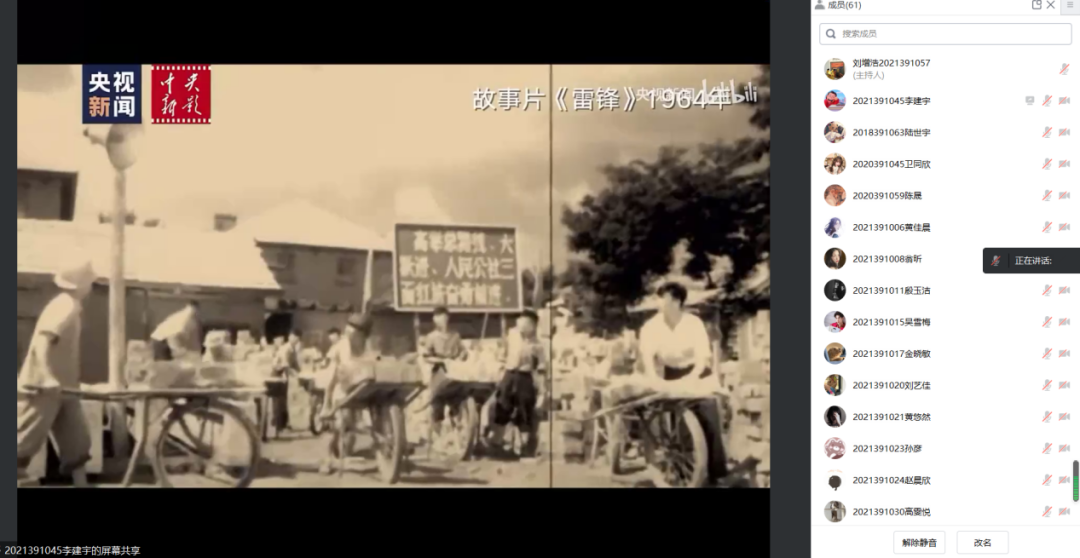 品读雷锋事迹,能看到“一心向着党,向着社会主义,向着共产主义”的坚定,“省吃俭用,点滴积累,支援国家建设”的奉献,“螺丝钉”般干一行爱一行、专一行精一行的敬业,以及“做一个对人民有用的人”的大爱。3月5日,同学们齐聚线上,通过故事片《雷锋》回顾了雷锋同志的一生。班长刘增浩表示:“雷锋同志身上敬业奉献、扶危济困、助人为乐的精神品质深深打动了我,作为新时代青年,我们更要成为雷锋精神的践行者,志愿服务的先行者!”入党积极分子邹德安表示:“雷锋精神具有穿越时空的价值,我们更要看到如今就在大家身边的‘雷锋’们。雷锋精神,人人可学!”退伍大学生陆世宇表示:“雷锋精神永不过时,所以我们更要从平时的一点一滴做起!”