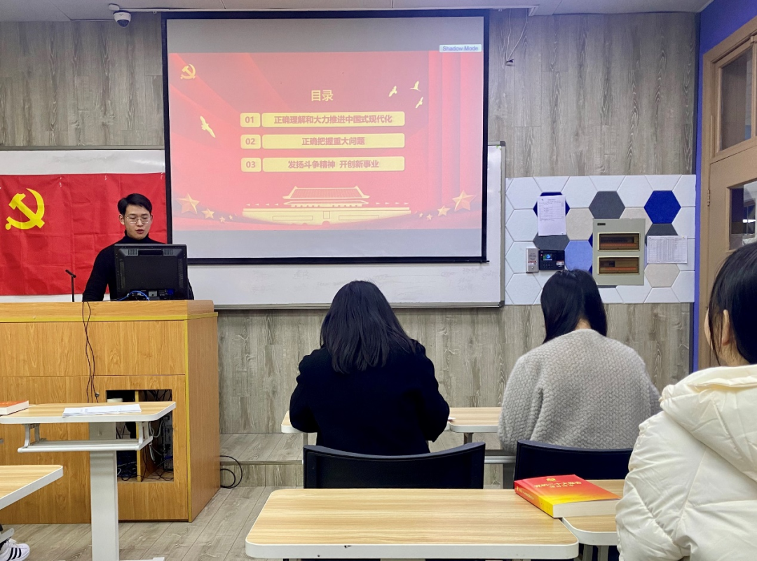 2023年2月17日,taptap点点官方网站第一学生党支部在8301教室开展“学习贯彻党的二十大精神,大力推进中国式现代化”主题党日活动。本次活动由支部书记吕金桥主持,支部师生党员共同参与。