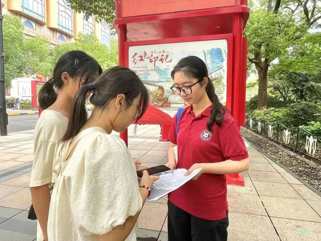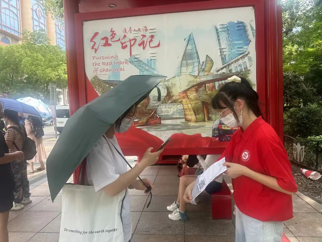 红色文旅蓬勃发展,彰显了红色文化强大的吸引力、感染力和影响力。2023年7月8日,“‘初心之城’中的‘红色巴士’——完善党史教育‘流动阵地’的有效策略研究”暑期社会实践团队成员们来到了红色巴士的始发站——五卅纪念碑站。通过问卷调查以及访谈乘客的形式,了解乘客乘坐红色巴士的感受心得及体会,领会红色巴士对于红色文化宣传的作用以及影响。通过调研,实践团的成员们清楚地了解人们对上海这座“初心之城”中的红色巴士的满意度以及红色文化的认识程度。