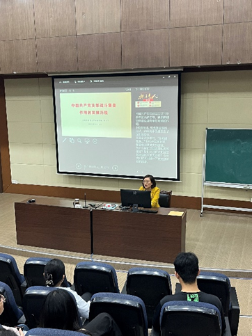 首先陈正芹同志为大家进行了《中国共产党支部战斗堡垒作用的发展历程》专题学习讲座,她生动具体地讲述了党支部的发展历史,在中共一大到二十大100多年的时间维度,党支部的渊源、发展和探索前进的方向。同时从五个方面详细介绍了大学生应如何树立正确的入党动机,筑牢信仰基石。最后借用习近平总书记在建党一百周年大会上的话来激励大家,希望大家争做新时代的中国青年,以实现中华民族伟大复兴为己任,增强做中国人的志气、骨气、底气,不负时代,不负韶华,不负党和人民的殷切期望。