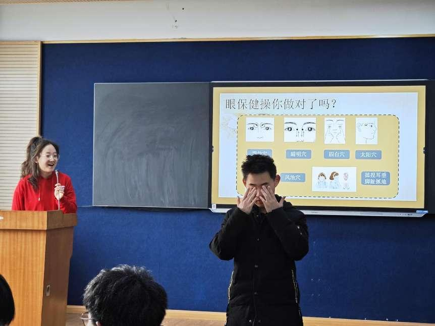 互动环节中,志愿者们以“眼保健操”为例,邀请同学们上台演示,并配合阐述其中蕴含着的中医药知识。同学们纷纷表示愿意继续了解中医药知识。现场气氛热烈,大家都沉浸在这一堂生动的科普课之中。