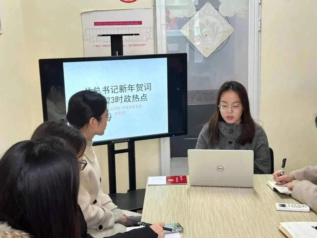 习近平总书记二〇二四年新年贺词既是一份“年终总结”也是一份“新年计划”,有着“怎么看2023年”“2024年怎么干”的鲜明答案。马克思主义学院学生党员杜佳瑶同志从“坚实”“力量”“神采”“底气”四个关键词出发带领全体党员回顾学习习近平总书记的这份“深情告白”。