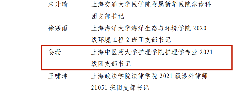 近日,共青团上海市委员会根据2023年度上海市基层团组织典型选树工作安排,对标“政治建设好、组织基础好、联系服务好、作用发挥好”的选树标准,综合相关情况,taptap点点官方网站护理学专业 2021 级团支部荣获2023年度“上海市基层团组织典型选树”团支部称号,支部团支书姜珊荣获2023年度“上海市基层团组织典型选树”个人称号。