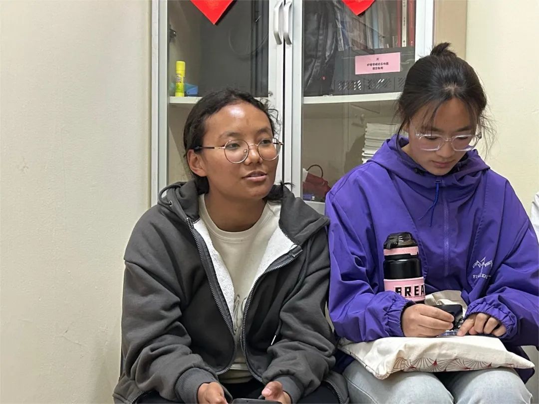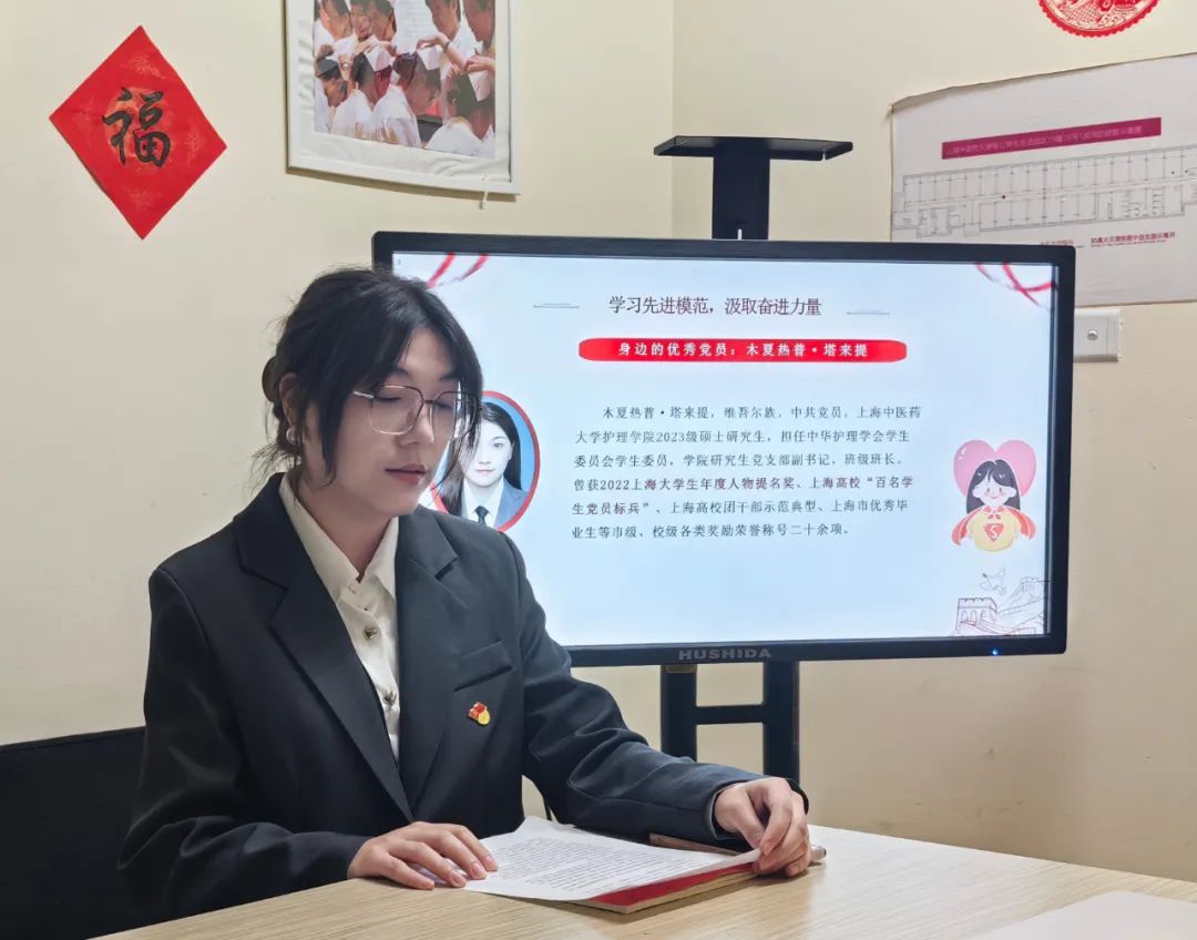 维吾尔族同学麦尔巴哈·艾散分享了她在“内高班”的学习和生活情况,她表示,这段宝贵经历帮助她收获更优质的教育资源,极大开拓了她的视野和眼界。藏族同学白央通过分享她在石家庄读高中的一件件具体实例,谈到了自身在环境适应、人际交往等方面的进步,由衷表达了对这一政策的感激之情。两位同学的分享使得在场的入党申请人对新时代党的民族理论政策有了更真切深刻的认识。