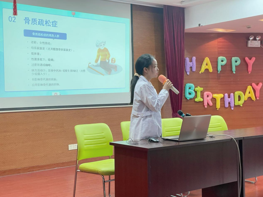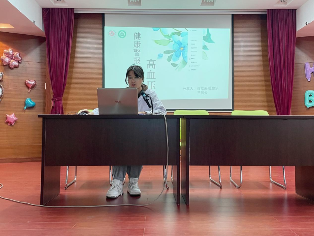 义诊后,岐梦天使志愿队成员分别从糖尿病、骨质疏松、高血压三个常见老年病进行健康宣教。叶涵同学重点介绍了糖尿病的并发症以及保健措施;冯丽丽同学与老人们进行了多次互动,就老人们日常腰痛、易摔跤等亚健康问题,提出了切实可行的锻炼方法,并介绍了taptap点点特色健康操——八段锦;孜拉莱同学重点介绍了高血压的测量方式和影响因素,帮助老人们在家也可以正确做好健康检测。