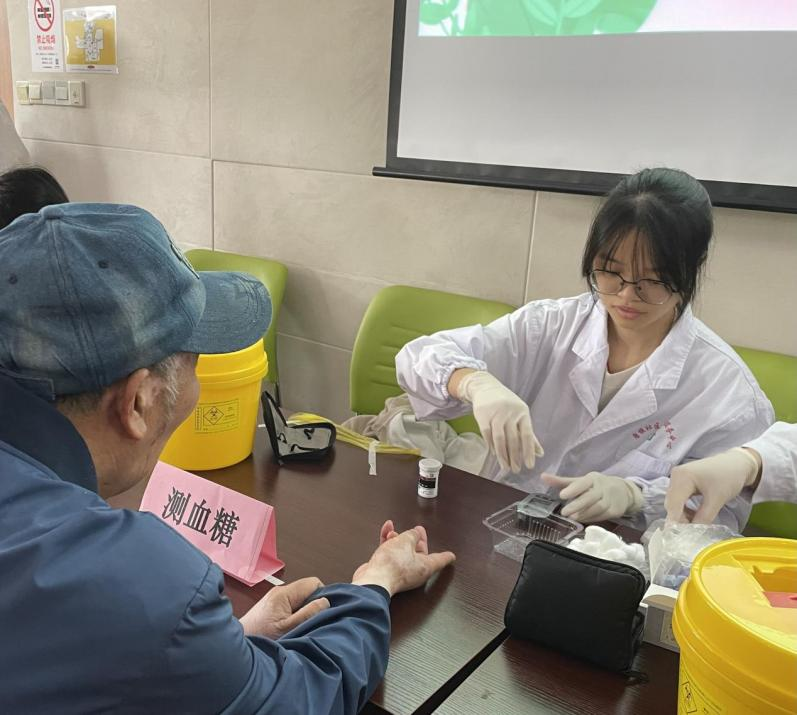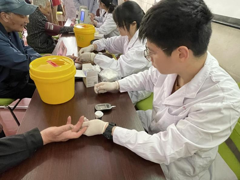 志愿队成员与唐镇社区护理人员共同为在场的老人们进行了血糖、血压的义诊项目,同时吕伟波教授也根据各项检测结果给予老人们个性化的健康建议,并在现场结合专业知识,向同学们教授护理专业技能及沟通技巧,提升同学们加强老年护理的意识,呼吁大家将来为老年护理贡献自己的青春力量。