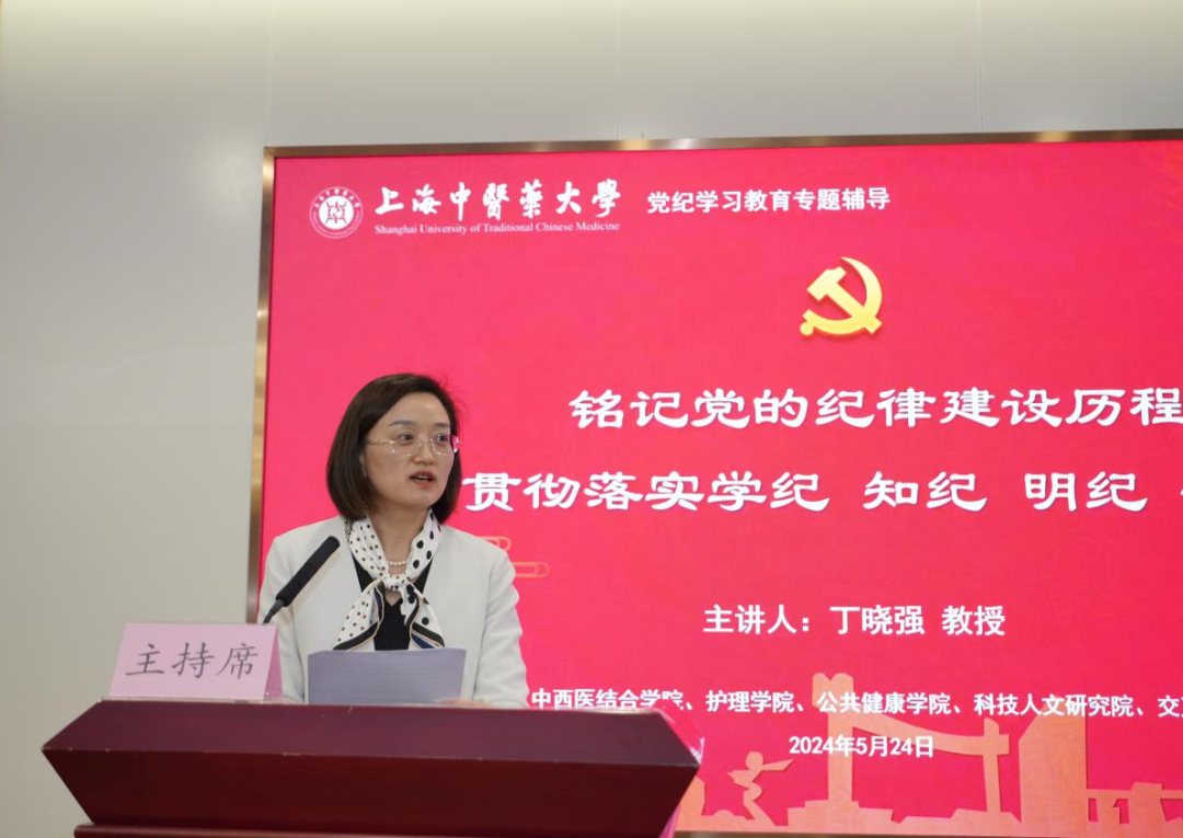 专题报告前,沈辉代表学校党委对二级学院开展党员集中培训及党纪学习教育工作提出了要求。他强调,一是要提高政治站位,强化师生党员集中培训重大意义的再认识;二是要统筹谋划实施,强化党员集中培训质量的再提升;三是要坚持联系实际,强化党员集中培训实效的再落实。他希望全体师生党员真正将党的创新理论深化、内化、转化为指导工作学习、推动事业发展的思想利器,切实把立足学习和工作岗位争创一流结合起来,在推动中医药事业高质量发展中挑重担、作表率,为强国建设、民族复兴伟业贡献更多中医药智慧和力量。