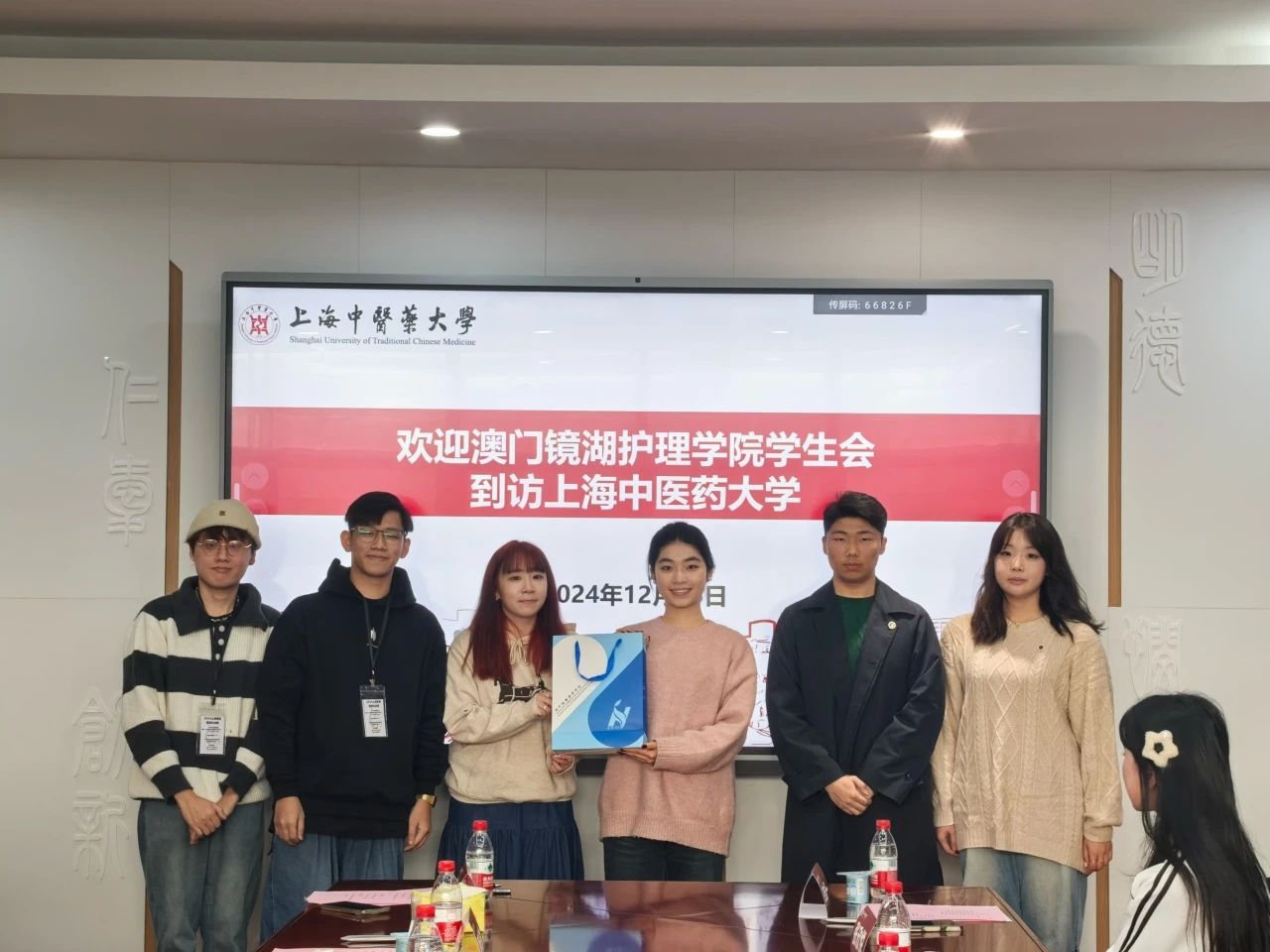 双方主席互换纪念品,现场全体人员合影留念,共同期待两校学生会友谊长青、合作再攀高峰。