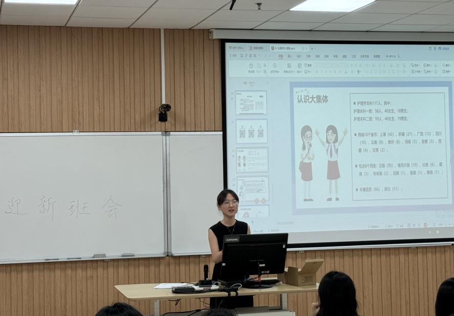 在“认识班级集体”部分,葛老师首先向在座的大家简要介绍了班级的人员组成情况,并特别强调,希望同学们在横跨10个省市、8个民族的班集体中,心怀善良、真诚待人、主动联络、敢于表达。接着,为了帮助112人的庞大班集体在开学这一阶段能够更好地管理与组织,24级护理学本科新生班级开始了第一次班委竞选活动。