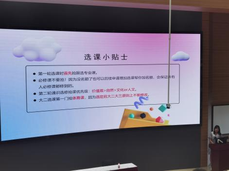 通过此次的选课指导活动,同学们对选课的流程、内容有了一定的了解,也对接下来的大学课程学习有了初步的规划。希望未来的四年,同学们能够主动探索学科领域、拓宽认知与视野、收获知识与成长、绽放青春的光彩。让我们且听风吟,静待花开!