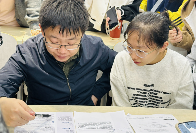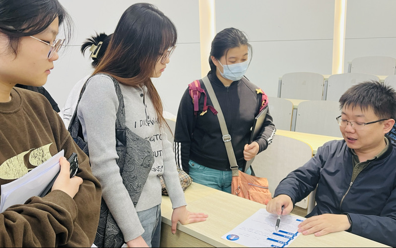 讲座结束后,同学们纷纷拿出制作好的简历进行请教,何老师也耐心地指出各个简历的优点和有待完善的地方,其指点让同学们豁然开朗。