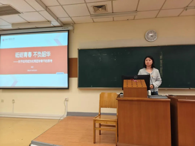 杨莹老师以“砥砺青春,不负韶华”为主题开展团课,通过与同学交流自身经历,引申出对于“团学骨干”的理解,提出优秀学生干部应该做到认真负责、公平公正、品学兼优、待人亲切,她提出,“团干部应当富有理想、对党忠诚、提升本领、具备服务意识与砥砺品质、认真学习。”