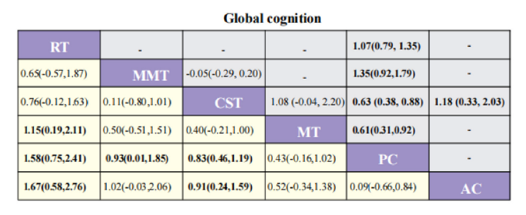 图2  认知策略训练有效性比较的网状Meta分析结果
